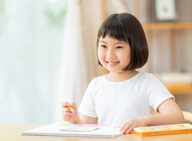 日常生活の中でお子様の様子に注意を払い、頬杖がクセにならないように導いていきましょう。 -