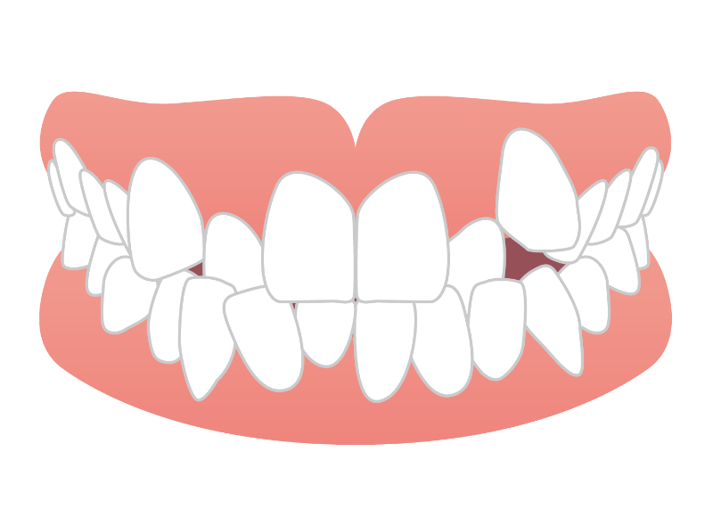歯列弓のスペースが不足しているために、歯が重なり合ったり、捻れたりしている状態です。叢生は、歯垢の蓄積を助長し、むし歯や歯周病のリスクを高めます。また、歯ブラシが届きにくい部分ができるため、口腔衛生の維持が難しくなります。